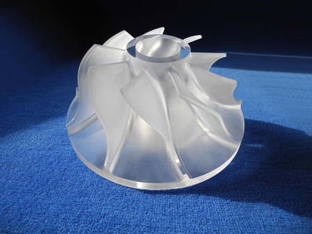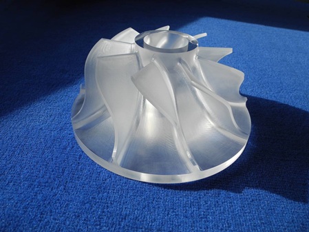 Dieses Impeller-Modell wurde uns mit freundlicher Genehmigung der Firma Schott Systeme GmbH zur Verfügung gestellt und der gesamte 5-Achs-Fräsprozess mit ihrer CAD/CAM-Software "Pictures by PC" umgesetzt.