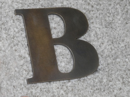 3 mm Messing, nachträglich brüniert. Bitte beachten Sie, dass verfahrens- und materialbedingt der Farbton auch innerhalb eines Schriftzuges von einander abweichen wird.