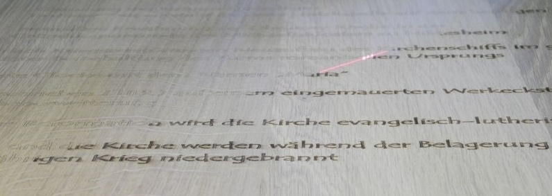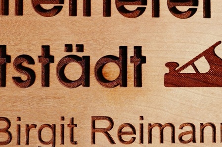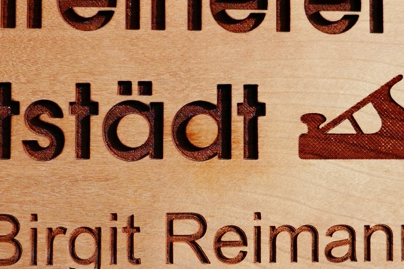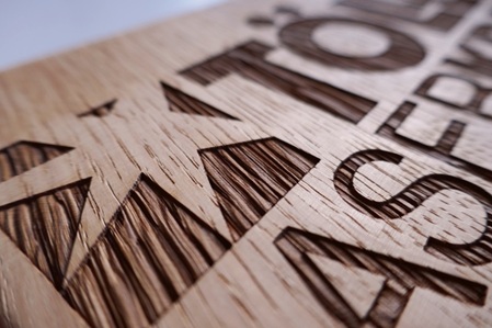 Bei einer Lasergravur wird mittels Hitze Material angetragen, das Lasergravieren von Holz ermöglicht feine Konturen. Die Laserschnittkanten sind, je nach Holzart und Materialstärke, braun-schwarz verfärbt und in der Regel frei von Splittern. Späne entstehen bei der Lasergravur nicht. Der leichte „Schmauch“ auf der Materialoberfläche, welcher je nach Holzart minder oder stärker auftritt, verleiht Holzgravuren ein (gewollt) rustikales Flair. Dieser kann auf Wunsch abgeschliffen werden, wenn die Gravurtiefe entsprechend gewählt wurde.